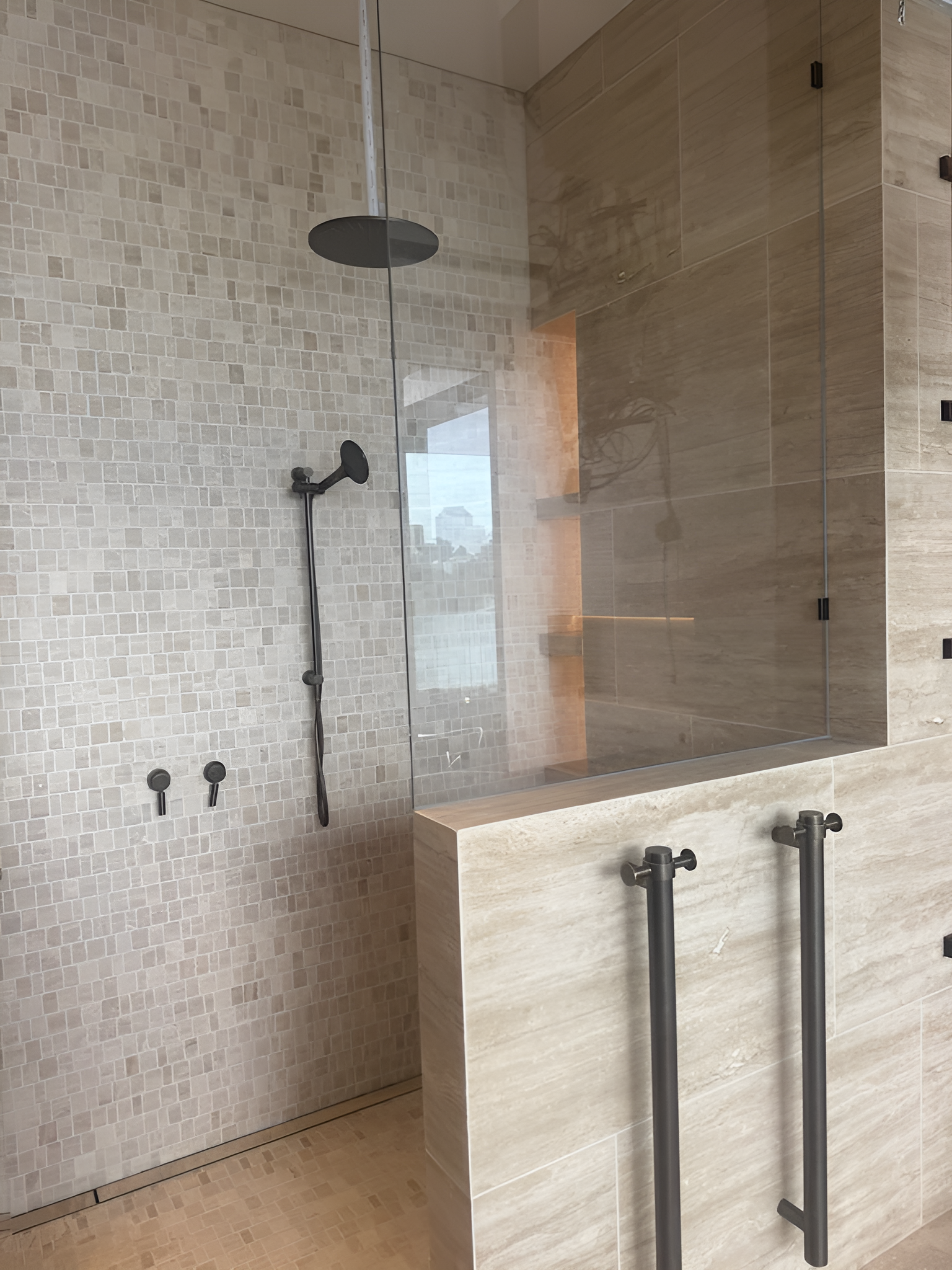 Elegant vein-cut travertine tiles paired with matching mosaic accents—perfect for creating seamless, sophisticated surfaces in both modern and classic spaces.